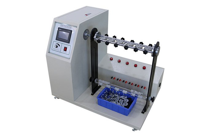 本機專門測試插頭引出線及電線之耐折強度,能自動計數(shù),方法是將試料固定在夾具上,并加一定荷重,試驗時夾具左右擺動,經(jīng)一定次數(shù)后,檢視其斷線率;或至無法通電時,查看其總計擺動次數(shù)。本機能自動計數(shù),試料彎折至斷線無法通電時,并能自動停止操作。