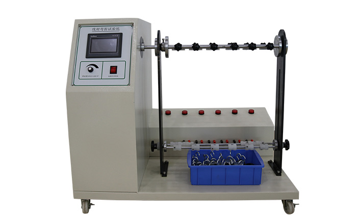 線材搖擺試驗機是將試料固定在夾具上,并加一定荷重,試驗時左右擺動,經(jīng)一定數(shù)次后,檢測其斷線率,查看其總擺動次數(shù),能自動計數(shù),試料彎折至斷線無法通電時,并能自動停止操作。